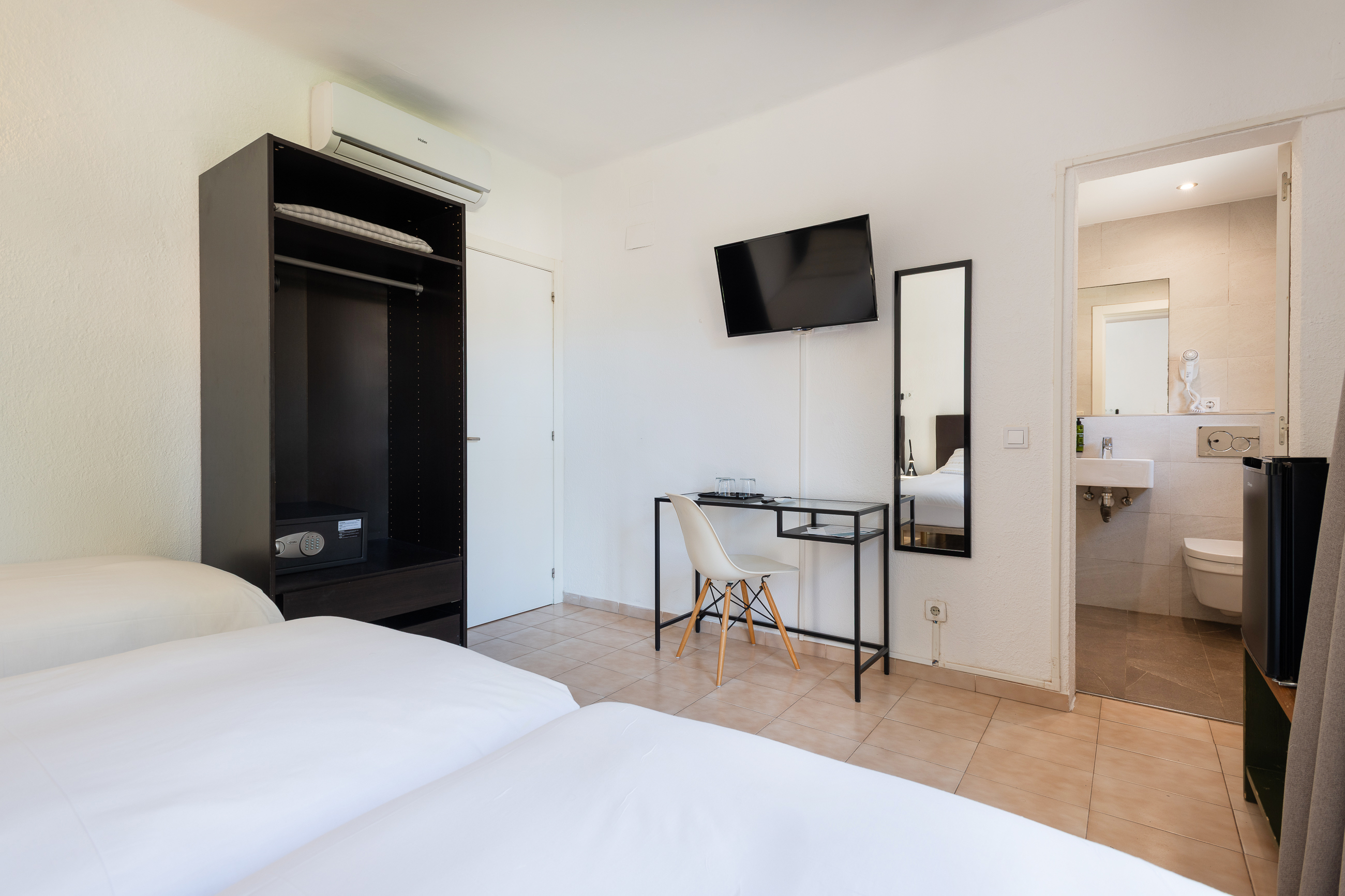 Habitación para tres personas con balcón o terraza privados, dos camas individuales (80cm x 190cm) y una cama individual extra (80cm x 190cm), TV y baño privado con ducha. Aire acondicionado, caja fuerte, nevera y Wi-Fi gratuito incluidos. Servicio de limpieza cada dos días.